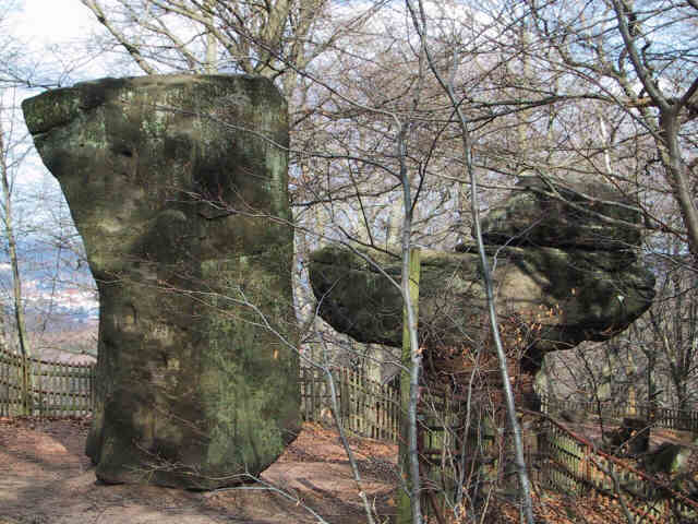 · Dass doo isch de Riesedisch (uffem Foddo linggahond). Doo soll de Gräidsmonn – dass isch däär Ries, däär wo im Buuch aa voorkimmd – imma sinne Gefongene gewomschd honn. Er isch gudd 3 Määla hoch, schdigga 6 Määla im Umfong. De Kräma hadd fa meechlich gehall, dass däär Brogge usseme viel greeßere Fels erussgehau woor wär, wäll die Sidde zimmlich ääwe sinn... awwa dass konnich ma nidd gudd voorschdelle...